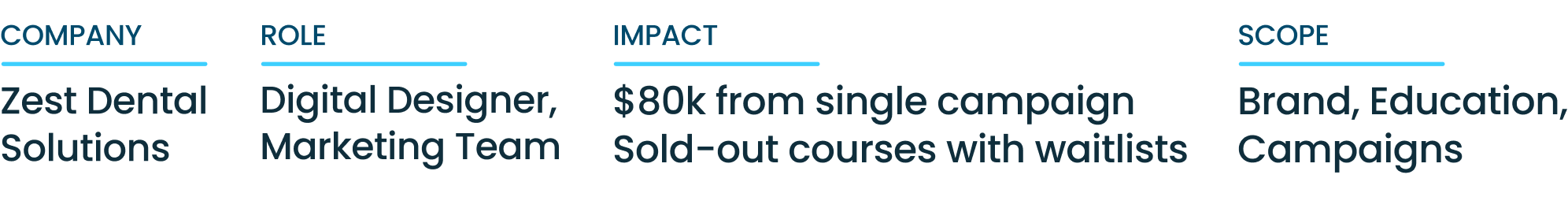 Before a dentist might enroll in a course or consider a product, they have to know Zest exists. We built awareness through campaigns that led with enough personality to stand out in a conservative, credential-driven industry without sacrificing the professional credibility the audience demanded.