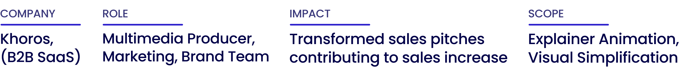 My animation replaced a diagram that had been in active use across Khoros's sales and marketing materials. It was adopted companywide by the Khoros sales team, integrated into executive business reviews, adopted into sales decks, and used on the company’s website. It completely changed how the sales team communicated with customers resulting in a growth in sales.