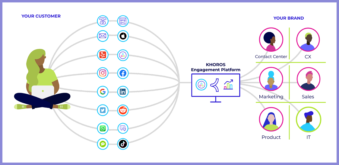 A potential customer looking at the old diagram describing Khoros’ B2B SaaS product is overwhelmed. Today you have seconds before you lose a viewer’s attention span, so that lack of clarity was costing Khoros conversations.