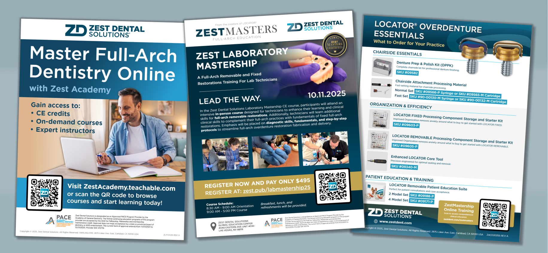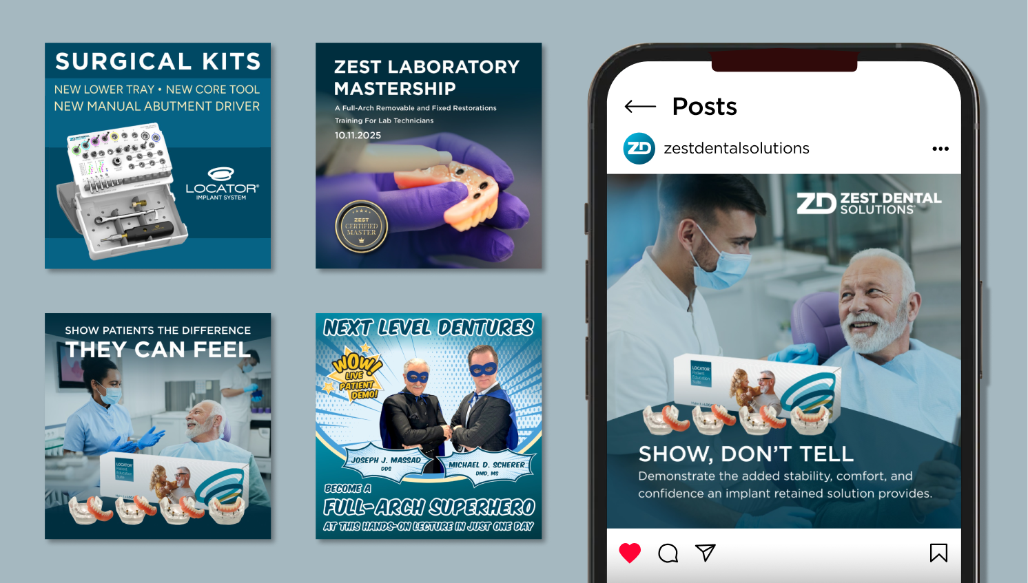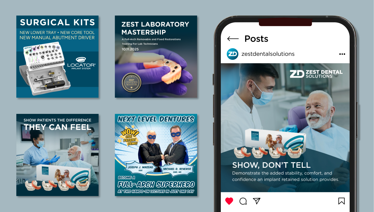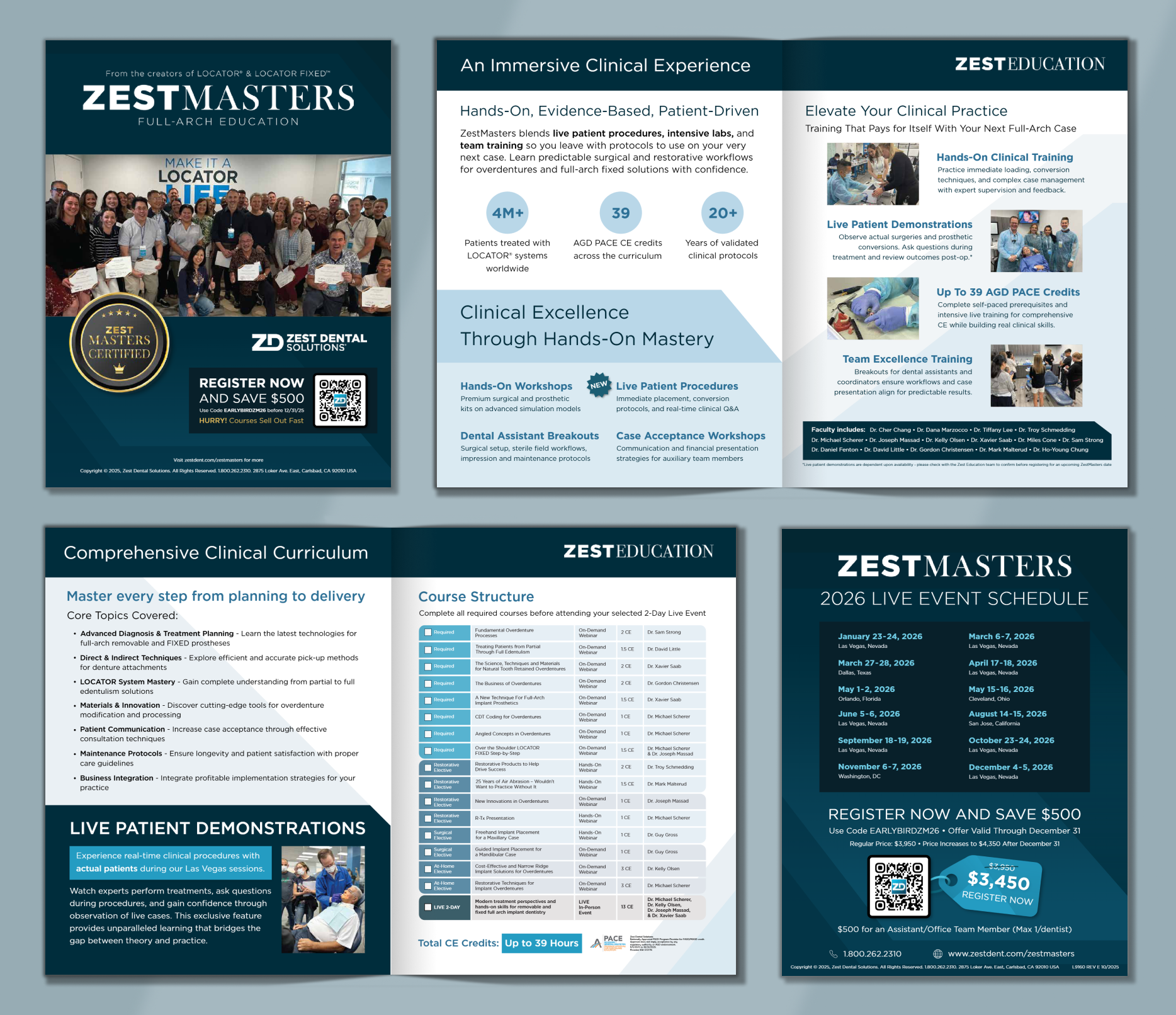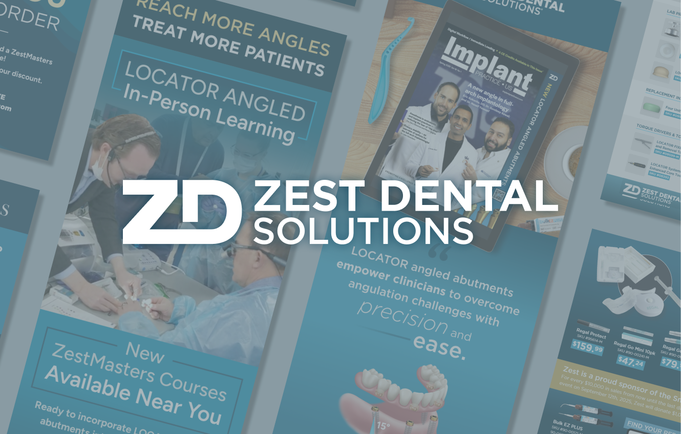 Dental school doesn't teach implant systems, overdenture components, or full-arch surgery. Zest Dental Solutions does. As the digital designer on Zest’s marketing team it was my job to design the materials that got dentists in the room, trained, and converted that training into lasting product adoption.