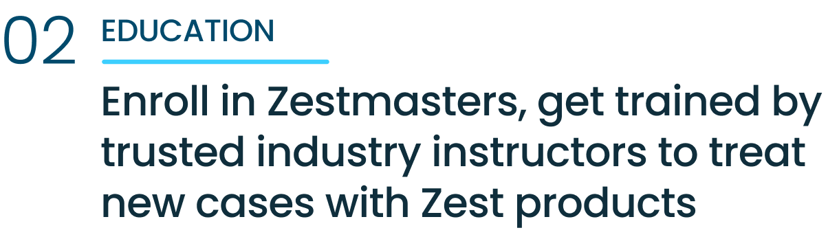 Rather than defaulting to traditional product marketing, we built a full-funnel system anchored around training dentists in a new skill made possible by our products which lets then expand their practice to new patients. These CE courses, Zestmasters and Zest Academy, were the lead magnet and the product. Zestmasters featured instructors dentists recognized from dental school curricula and dental social media. That credibility did heavy lifting at the top of the funnel, and every piece of collateral we built had to match it.